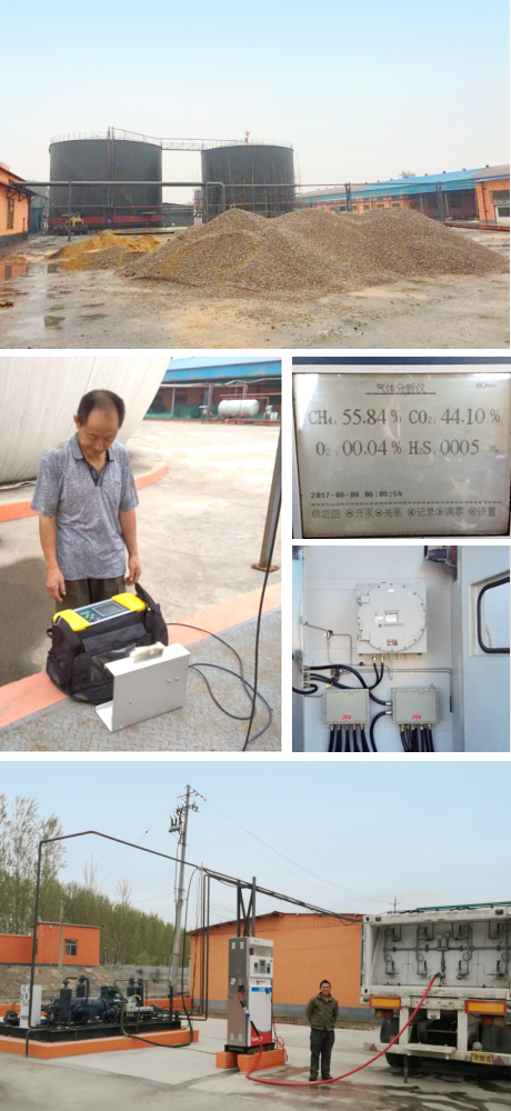 通過項(xiàng)目現(xiàn)場與技術(shù)人員洽談?wù)託夤こ瘫O(jiān)測解決方案,最終確定使用 1 臺(tái)便攜式紅外沼氣分析儀 Gasboard-3200L 和1臺(tái)防爆型在線紅外氣體分析儀 Gasboard-3500,其中Gasboard-3500 由東阿縣綠地生物能源科技有限公司委托北京三益能環(huán)集成配套,現(xiàn)場安裝。