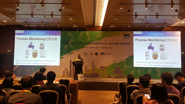 2017年10月17日-20日,中國沼氣學(xué)會(huì)學(xué)術(shù)年會(huì)作為第15屆國際水協(xié)會(huì)厭氧大會(huì)(簡(jiǎn)稱AD15)邊會(huì),與AD15大會(huì)同期在國家會(huì)議中心順利召開。四方光電股份有限公司作為世界厭氧大會(huì)AD15金牌贊助商與企業(yè)代表攜手全資子公司湖北銳意出席盛會(huì),湖北銳意沼成分及流量測(cè)量新品——沼氣分析系統(tǒng)Gasboard-9061和超聲波沼氣流量計(jì)BF-3000B也悉數(shù)亮相。