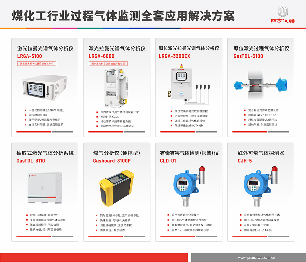 四方光電(武漢)儀器有限公司(以下簡稱“四方儀器”)攜煤化工行業(yè)過程氣體監(jiān)測全套應(yīng)用解決方案在展會上驚艷亮相,以創(chuàng)新科技和卓越品質(zhì),贏得了參觀考察的專家與觀眾們的廣泛贊譽(yù)。該方案融合了激光拉曼(LRD)可調(diào)諧半導(dǎo)體激光TDLAS)、紅外(NDIR)、電化學(xué)(TCD)等多項(xiàng)先進(jìn)技術(shù),滿足了煤化工行業(yè)多樣化的應(yīng)用需求。