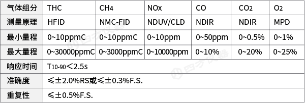 - -檢測(cè)組分:THC、CH?、NOx、CO、CO?、O?