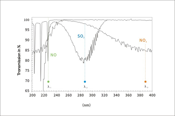 不同于紅外(IR),紫外(UV)光譜吸收波段是納米級別的,波長更短,波峰比較獨立。非分光紫外(NDUV)可準(zhǔn)確測量NO2氣體濃度,不受水分干擾,精度更高,且非分光紫外(NDUV)相對于紫外差分吸收光譜(UV-DOAS)成本較低。采用非分光紫外(NDUV)直測NO2,成功打破汽車尾氣檢測中需配套NOx轉(zhuǎn)化爐將NO2轉(zhuǎn)化為NO,采用紅外光學(xué)平臺測量NO濃度,再通過NO濃度計算得出NO2濃度的局限性,更加節(jié)省系統(tǒng)集成空間及維護成本;且NO2測量更準(zhǔn)確,不受轉(zhuǎn)化效率的影響。
