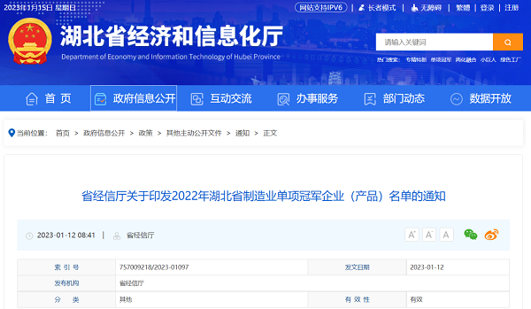 1月12日,湖北省經(jīng)濟和信息化廳發(fā)布《關(guān)于印發(fā)2022年湖北省制造業(yè)單項冠軍企業(yè)(產(chǎn)品)名單的通知》,四方光電獲評“2022年湖北省制造業(yè)單項冠軍企業(yè)”。