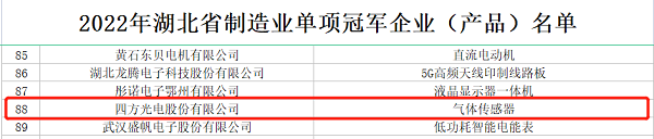 四方光電獲評“2022年湖北省制造業(yè)單項冠軍企業(yè)”