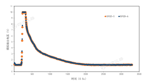 圖6 CVD設(shè)備2次重復腔室清潔試驗的Gasboard-2060 SiF?實測數(shù)據(jù)曲線