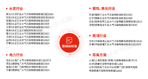為了進一步完善國家大氣氨排放監(jiān)測體系,各省、自治區(qū)等地方政府單位在國家標準的基礎(chǔ)上,結(jié)合各自省份的產(chǎn)業(yè)結(jié)構(gòu)、經(jīng)濟環(huán)境和排放類型等特點,陸續(xù)發(fā)布了一系列地方標準。