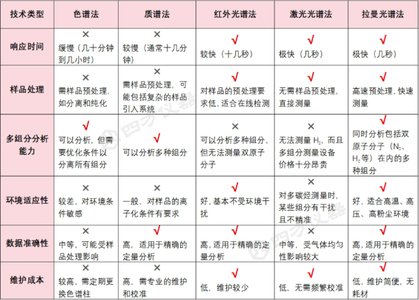 常見氣體成分分析技術(shù)對比