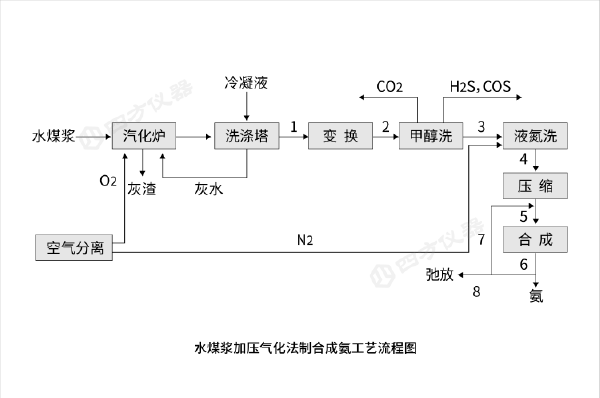 合成氨是在高溫高壓和催化劑存在下由氮和氫直接合成氨的過(guò)程,是一種基本無(wú)機(jī)化工流程,在現(xiàn)代化學(xué)工業(yè)中,氨是化肥工業(yè)和基本有機(jī)化工的主要原料,我國(guó)由于煤炭資源豐富、油氣資源相對(duì)貧乏,主要以煤生產(chǎn)氨,有研究數(shù)據(jù)表明,用煤、焦炭為原料的合成氨產(chǎn)量約占總產(chǎn)量的60%以上,其生產(chǎn)工藝的核心流程包括煤氣化制合成氣、變換、脫硫、脫碳、凈化、氨合成、分離等環(huán)節(jié),氣體分析在各階段的工藝控制、質(zhì)量監(jiān)測(cè)及安全運(yùn)行中都極為關(guān)鍵。