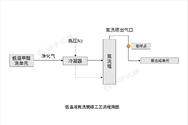 液氮洗滌法通過(guò)利用約-190℃的高純液氮來(lái)吸收分離原料氣中的CO和CO2,其出口凈化氣中微量CO和CO2的在線分析對(duì)合成氨生產(chǎn)極為關(guān)鍵,因?yàn)闃O少量的CO和CO2就會(huì)導(dǎo)致氨合成催化劑中毒,通常大型合成氨廠要求進(jìn)入合成塔的原料氣中CO和CO2的總量要小于10ppm。