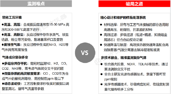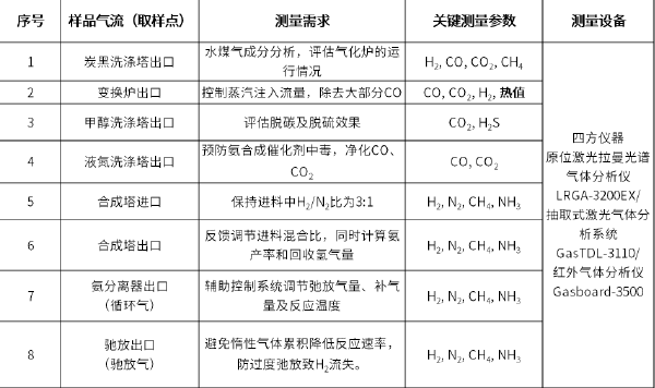 以煤為原料的合成氨裝置的樣品具有高溫、高壓、高濕、高粉塵以及高腐蝕性等顯著特點(diǎn)。其次,合成氨裝置是一種快速且劇烈的反應(yīng)裝置,工藝人員需要及時(shí)了解各階段反應(yīng)生成的物料質(zhì)量狀況,以便迅速調(diào)整工藝。同時(shí),合成氣成分復(fù)雜,主要包含H2、CO、CH4、CO2、N2、H2S等成分。這些特性給在線分析儀表帶來(lái)了巨大挑戰(zhàn)。