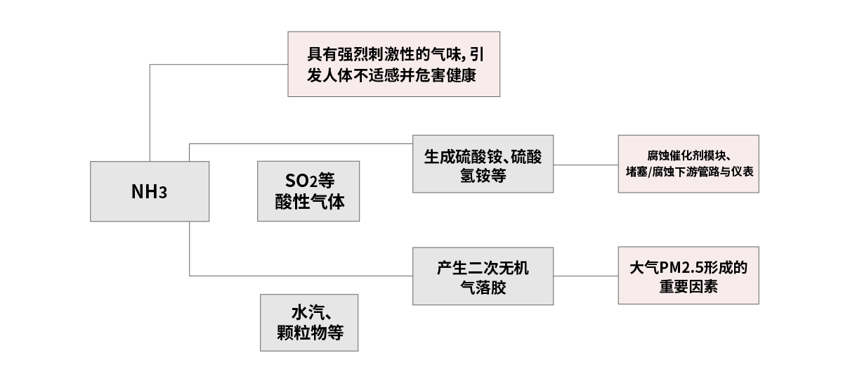 在工業(yè)脫硝中,氨逃逸是指未反應的氨隨煙氣排放到大氣的現(xiàn)象。為滿足嚴格的氮氧化物排放標準,企業(yè)常采用“過量噴氨”策略,導致氨逃逸率上升。我國現(xiàn)行大氣氨排放標準有11個,限值范圍為8-30mg/m3。2024年1月,水泥和焦化行業(yè)超低排放意見發(fā)布,新增氨污染自動監(jiān)測要求。若企業(yè)廢氣氨濃度超標,將面臨罰款、關(guān)停、約談等處罰。
