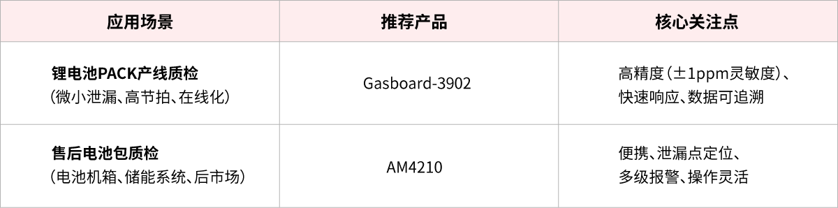目前,處于征求意見階段的國(guó)家標(biāo)準(zhǔn)《鋰離子電池生產(chǎn)質(zhì)量管理》明確提出,在鋰電池及相關(guān)產(chǎn)品生產(chǎn)環(huán)節(jié),應(yīng)使用專業(yè)設(shè)備進(jìn)行電解液泄漏檢測(cè)。面對(duì)電池化學(xué)成分多樣化、生產(chǎn)節(jié)拍高速化的現(xiàn)實(shí)挑戰(zhàn),構(gòu)建快速、高效的泄漏檢測(cè)體系,已成為行業(yè)質(zhì)量管控的核心環(huán)節(jié)。1、鋰電池PACK產(chǎn)線質(zhì)檢:泄漏量極為微小,對(duì)檢測(cè)精度、靈敏度及低檢出限要求極高;檢測(cè)系統(tǒng)須具備快速響應(yīng)能力,以匹配高速流水線節(jié)拍,同時(shí)支持在線化、數(shù)據(jù)可追溯,便于集成于自動(dòng)化生產(chǎn)管理系統(tǒng)。